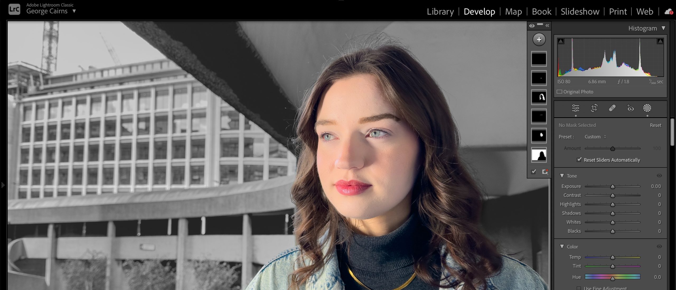 The interface has control panels on both sides, as well as at the top and bottom, which you can hide by pressing a convenient triangle button. You can also select the tools that will be displayed on the side panels. Some full-screen options are available with and without menus. Pressing L on your keyboard will take you to the lightbox view, which hides everything except your photo.